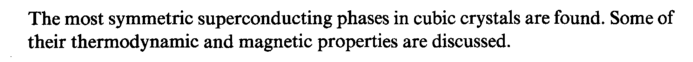 The most symmetric superconducting phases in cubic crystals are found. Some of their thermodynamic and magnetic properties are discussed.