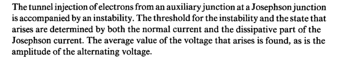The tunnel injection of electrons from an auxiliary junction at a Josephson junction is accompanied by an instability. The threshold for the instability and the state that arises are determined by both the normal current and the dissipative part of the Josephson current. The average value of the voltage that arises is found, as is the amplitude of the alternating voltage.