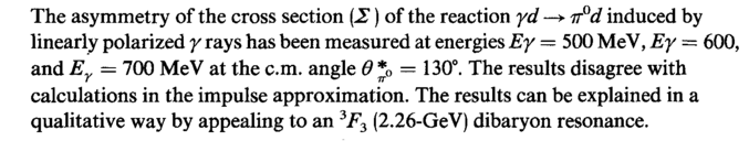 The asymmetry of the cross section (Σ) of the reaction yd —> ir°d induced by linearly polarized γ rays has been measured at energies Εγ — 500 MeV, Εγ ~ 600, and Εγ — 700 MeV at the cm. angle Θ *0 — 130°. The results disagree with calculations in the impulse approximation. The results can be explained in a qualitative way by appealing to an 3F3 (2.26-GeV) dibaryon resonance.