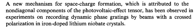 A new mechanism for space-charge formation, which is attributed to the nondiagonal components of the photovoltaic-effect tensor, has been observed in experiments on recording dynamic phase gratings by beams with a crossed polarization in iron-doped lithium niobate crystals.