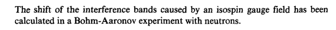 The shift of the interference bands caused by an isospin gauge field has been calculated in a Bohm-Aaronov experiment with neutrons.