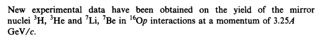 New experimental data have been obtained on the yield of the mirror nuclei 3H, 3He and 7Li, 7Be in 16Op interactions at a momentum of 3.25A GeV/c.