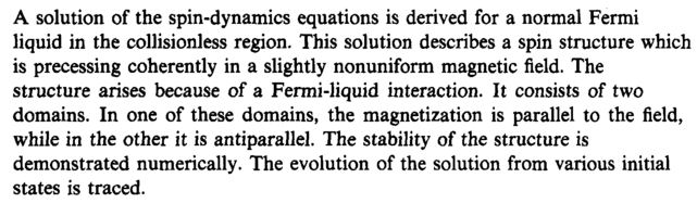A solution of the spin-dynamics equations is derived for a normal Fermi liquid in the collisionless region. This solution describes a spin structure which is precessing coherently in a slightly nonuniform magnetic field. The structure arises because of a Fermi-liquid interaction. It consists of two domains. In one of these domains, the magnetization is parallel to the field, while in the other it is antiparallel. The stability of the structure is demonstrated numerically. The evolution of the solution from various initial states is traced.