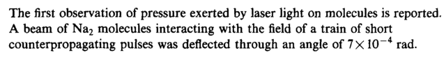The first observation of pressure exerted by laser light on molecules is reported. A beam of Na2 molecules interacting with the field of a train of short counterpropagating pulses was deflected through an angle of 7X 10~4 rad.