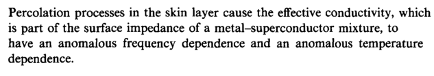 Percolation processes in the skin layer cause the effective conductivity, which is part of the surface impedance of a metal-superconductor mixture, to have an anomalous frequency dependence and an anomalous temperature dependence.