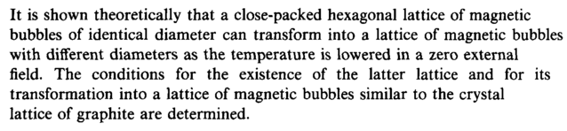 It is shown theoretically that a close-packed hexagonal lattice of magnetic bubbles of identical diameter can transform into a lattice of magnetic bubbles with different diameters as the temperature is lowered in a zero external field. The conditions for the existence of the latter lattice and for its transformation into a lattice of magnetic bubbles similar to the crystal lattice of graphite are determined.