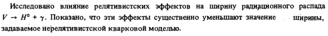 Исследовано влияние релятивистских эффектов на ширину радиационного распада V -+ Н° + у. Показано, что эти эффекты существенно уменьшают значение ширины, задаваемое не'релятивистской кварков ой моделью.