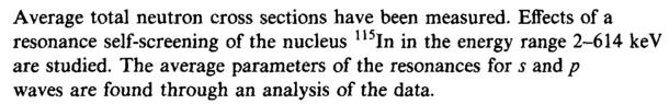 Average total neutron cross sections have been measured. Effects of a resonance self-screening of the nucleus 115In in the energy range 2-614 keV are studied. The average parameters of the resonances for s and ρ waves are found through an analysis of the data.