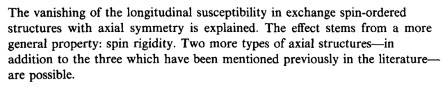 The vanishing of the longitudinal susceptibility in exchange spin-ordered structures with axial symmetry is explained. The effect stems from a more general property: spin rigidity. Two more types of axial structures—in addition to the three which have been mentioned previously in the literature— are possible.