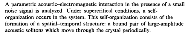 A parametric acoustic-electromagnetic interaction in the presence of a small noise signal is analyzed. Under supercritical conditions, a self-organization occurs in the system. This self-organization consists of the formation of a spatial-temporal structure: a bound pair of large-amplitude acoustic solitons which move through the crystal periodically.