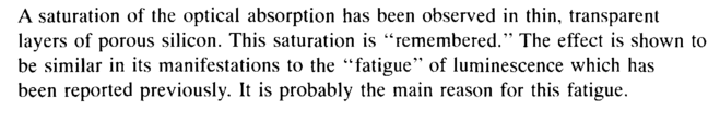 A saturation of the optical absorption has been observed in thin, transparent layers of porous silicon. This saturation is "remembered." The effect is shown to be similar in its manifestations to the "fatigue" of luminescence which has been reported previously. It is probably the main reason for this fatigue.