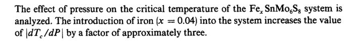 The effect of pressure on the critical temperature of the Fe^ SnMo6S8 system is analyzed. The introduction of iron (x = 0,04) into the system increases the value of \dTc/dP I by a factor of approximately three.