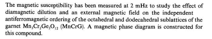The magnetic susceptibility has been measured at 2 mHz to study the effect of diamagnetic dilution and an external magnetic field on the independent antiferromagnetic ordering of the octahedral and dodecahedral sublattices of the garnet Mn3Cr2Ge3012 (MnCrG). A magnetic phase diagram is constructed for this compound.