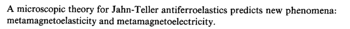 A microscopic theory for Jahn-Teller antiferroelastics predicts new phenomena: metamagnetoelasticity and metamagnetoelectricity.