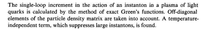 The single-loop increment in the action of an instanton in a plasma of light quarks is calculated by the method of exact Green's functions. Off-diagonal elements of the particle density matrix are taken into account. A temperature-independent term, which suppresses large instantons, is found.