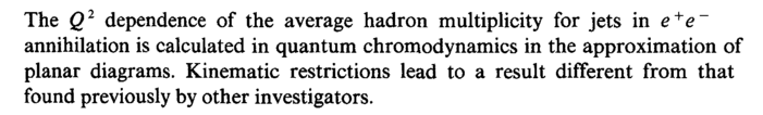 The Q2 dependence of the average hadron multiplicity for jets in e+e~ annihilation is calculated in quantum chromodynamics in the approximation of planar diagrams. Kinematic restrictions lead to a result different from that found previously by other investigators.