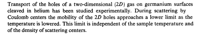 Transport of the holes of a two-dimensional (2D) gas on germanium surfaces cleaved in helium has been studied experimentally. During scattering by Coulomb centers the mobility of the 2D holes approaches a lower limit as the temperature is lowered. This limit is independent of the sample temperature and of the density of scattering centers.