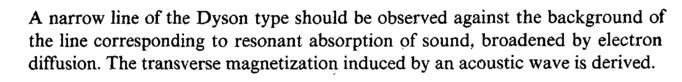 A narrow line of the Dyson type should be observed against the background of the line corresponding to resonant absorption of sound, broadened by electron diffusion. The transverse magnetization induced by an acoustic wave is derived.