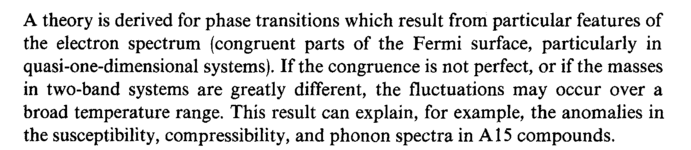 A theory is derived for phase transitions which result from particular features of the electron spectrum (congruent parts of the Fermi surface, particularly in quasi-one-dimensional systems). If the congruence is not perfect, or if the masses in two-band systems are greatly different, the fluctuations may occur over a broad temperature range. This result can explain, for example, the anomalies in the susceptibility, compressibility, and phonon spectra in A15 compounds.