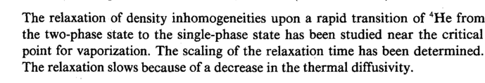 The relaxation of density inhomogeneities upon a rapid transition of 4He from the two-phase state to the single-phase state has been studied near the critical point for vaporization. The scaling of the relaxation time has been determined. The relaxation slows because of a decrease in the thermal diffusivity.