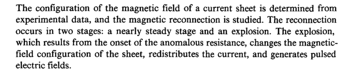 The configuration of the magnetic field of a current sheet is determined from experimental data, and the magnetic reconnection is studied. The reconnection occurs in two stages: a nearly steady stage and an explosion. The explosion, which results from the onset of the anomalous resistance, changes the magnetic-field configuration of the sheet, redistributes the current, and generates pulsed electric fields.