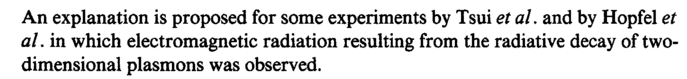 An explanation is proposed for some experiments by Tsui et al, and by Hopfel et al. in which electromagnetic radiation resulting from the radiative decay of two-dimensional plasmons was observed.