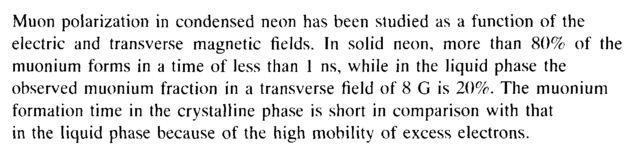 Muon polarization in condensed neon has been studied as a function of the electric and transverse magnetic fields. In solid neon, more than 80% of the muonium forms in a time of less than 1 ns, while in the liquid phase the observed muonium fraction in a transverse field of 8 G is 20%. The muonium formation time in the crystalline phase is short in comparison with that in the liquid phase because of the high mobility of excess electrons.