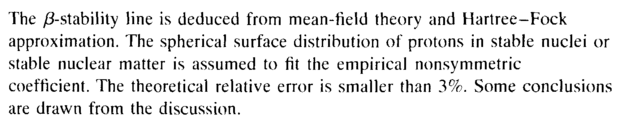 The /З-stability line is deduced from mean-field theory and Hartree-Fock approximation. The spherical surface distribution of protons in stable nuclei or stable nuclear matter is assumed to fit the empirical nonsymmetric coefficient. The theoretical relative error is smaller than 3%. Some conclusions are drawn from the discussion.