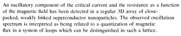 An oscillatory component of the critical current and the resistance as a function of the magnetic field has been detected in a regular 3D array of close-packed, weakly linked superconductor nanoparticles. The observed oscillation spectrum is interpreted as being related to a quantization of magnetic flux in a system of loops which can be distinguished in such a lattice.