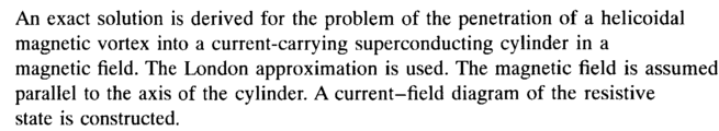 An exact solution is derived for the problem of the penetration of a helicoidal magnetic vortex into a current-carrying superconducting cylinder in a magnetic field. The London approximation is used. The magnetic field is assumed parallel to the axis of the cylinder. A current-field diagram of the resistive state is constructed.