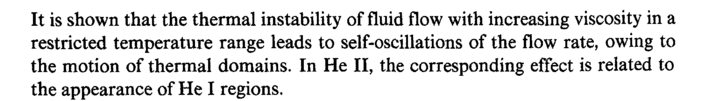 It is shown that the thermal instability of fluid flow with increasing viscosity in a restricted temperature range leads to self-oscillations of the flow rate, owing to the motion of thermal domains. In He II, the corresponding effect is related to the appearance of He I regions.