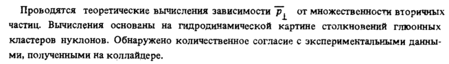Проводятся теоретические вычисления зависимости от множественности вторичных частиц. Вычисления основаны на гидродинамической картине столкновений ппоонных кластеров нуклонов. Обнаружено количественное согласие с экспериментальными данными, полученными на коллайдере.