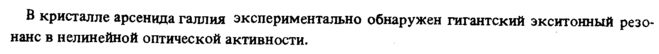 кристалле арсенида галлия экспериментально обнаружен гигантский экситонный резонанс в нелинейной оптической активности.