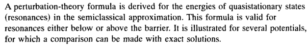 A perturbation-theory formula is derived for the energies of quasistationary states (resonances) in the semiclassical approximation. This formula is valid for resonances either below or above the barrier. It is illustrated for several potentials, for which a comparison can be made with exact solutions.