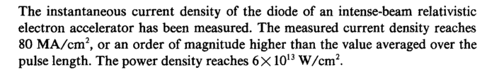 The instantaneous current density of the diode of an intense-beam relativistic electron accelerator has been measured. The measured current density reaches 80 MA/cm2, or an order of magnitude higher than the value averaged over the pulse length. The power density reaches 6X1013 W/cm2.