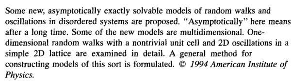 Some new, asymptotically exactly solvable models of random walks and oscillations in disordered systems are proposed. "Asymptotically" here means after a long time. Some of the new models are multidimensional. One-dimensional random walks with a nontrivial unit cell and 2D oscillations in a simple 2D lattice are examined in detail. A general method for constructing models of this sort is formulated. © 1994 American Institute of Physics.