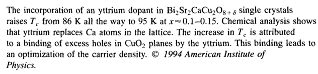 Effect of yttrium on the increase in Tc of Bi(2212) crystals