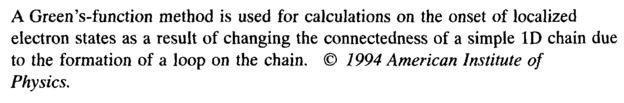 A Green's-function method is used for calculations on the onset of localized electron states as a result of changing the connectedness of a simple ID chain due to the formation of a loop on the chain. © 1994 American Institute of Physics.