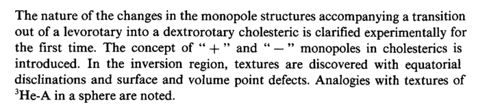 The nature of the changes in the monopole structures accompanying a transition out of a levorotary into a dextrorotary cholesteric is clarified experimentally for the first time. The concept of " + " and " — " monopoles in cholesterics is introduced. In the inversion region, textures are discovered with equatorial disclinations and surface and volume point defects. Analogies with textures of 3He-A in a sphere are noted.