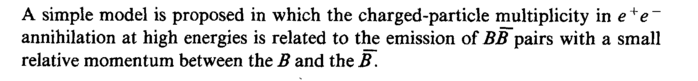 A simple model is proposed in which the charged-particle multiplicity in e+e~ annihilation at high energies is related to the emission of BB pairs with a small relative momentum between the В and the B.