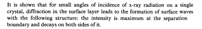 It is shown that for small angles of incidence of x-ray radiation on a single crystal, diffraction in the surface layer leads to the formation of surface waves with the following structure: the intensity is maximum at the separation boundary and decays on both sides of it.