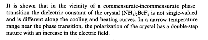 It is shown that in the vicinity of a commensurate-incommensurate phase transition the dielectric constant of the crystal (NH4)2BeF4 is not single-valued and is different along the cooling and heating curves. In a narrow temperature range near the phase transition, the polarization of the crystal has a double-step nature with an increase in the electric field.