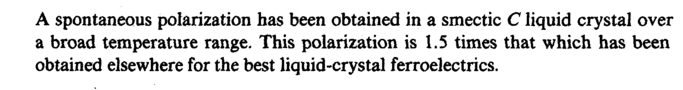 A spontaneous polarization has been obtained in a smectic С liquid crystal over a broad temperature range. This polarization is 1.5 times that which has been obtained elsewhere for the best liquid-crystal ferroelectrics.