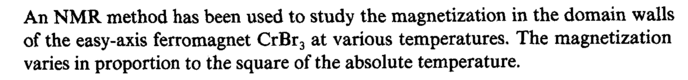 An NMR method has been used to study the magnetization in the domain walls of the easy-axis ferromagnet CrBr3 at various temperatures. The magnetization varies in proportion to the square of the absolute temperature.
