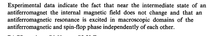 Experimental data indicate the fact that near the intermediate state of an antiferromagnet the internal magnetic field does not change and that an antiferromagnetic resonance is excited in macroscopic domains of the antiferromagnetic and spin-flop phase independently of each other.