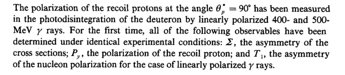 The polarization of the recoil protons at the angle Θ* = 90° has been measured in the photodisintegration of the deuteron by linearly polarized 400and 500-MeV γ rays. For the first time, all of the following observables have been determined under identical experimental conditions: Σ, the asymmetry of the cross sections; Py, the polarization of the recoil proton; and Tlt the asymmetry of the nucleon polarization for the case of linearly polarized γ rays.