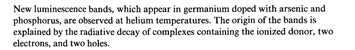 New luminescence bands, which appear in germanium doped with arsenic and phosphorus, are observed at helium temperatures. The origin of the bands is explained by the radiative decay of complexes containing the ionized donor, two electrons, and two holes.