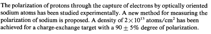 The polarization of protons through the capture of electrons by optically oriented sodium atoms has been studied experimentally. A new method for measuring the polarization of sodium is proposed. A density of 2 χ 1013 atoms/cm2 has been achieved for a charge-exchange target with a 90 + 5% degree of polarization.