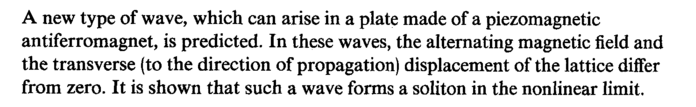 A new type of wave, which can arise in a plate made of a piezomagnetic antiferromagnet, is predicted. In these waves, the alternating magnetic field and the transverse (to the direction of propagation) displacement of the lattice differ from zero. It is shown that such a wave forms a soliton in the nonlinear limit.