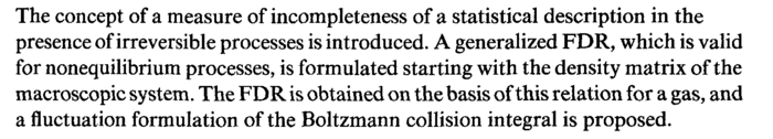 The concept of a measure of incompleteness of a statistical description in the presence of irreversible processes is introduced. A generalized FDR, which is valid for nonequilibrium processes, is formulated starting with the density matrix of the macroscopic system. The FDR is obtained on the basis of this relation for a gas, and a fluctuation formulation of the Boltzmann collision integral is proposed.